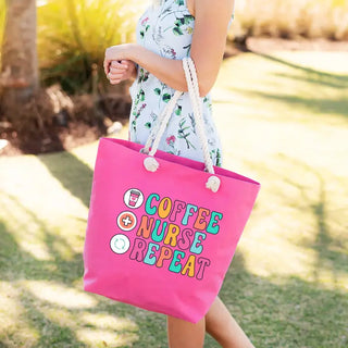Coffee Nurse Repeat Castaway Tote #HP734-BLK-CNR
