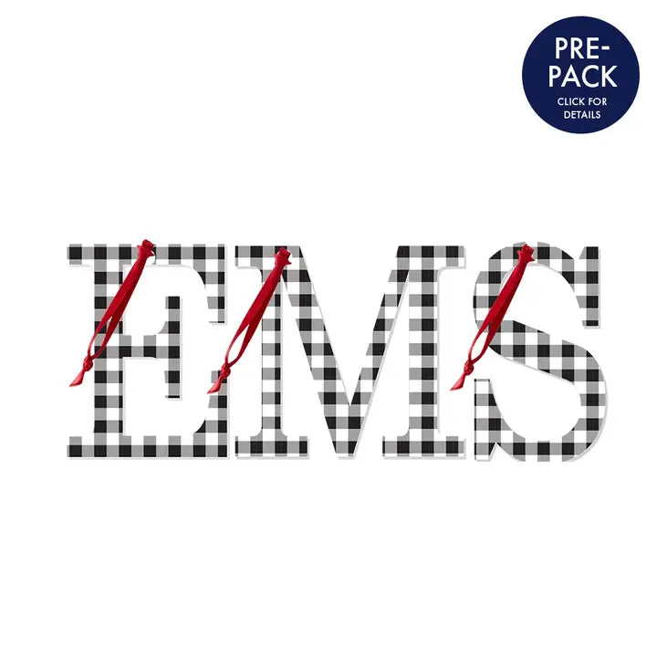 Black Buffalo Check Large Initial Ornament 14 pc Set #PACK-ACOR-INITIALS-BLKCHECK