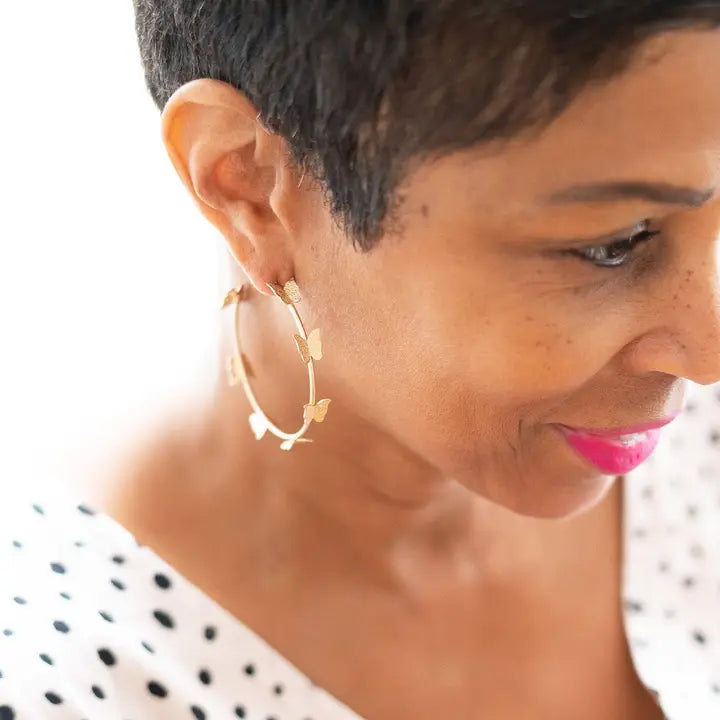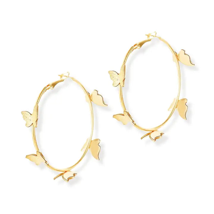 Gold Butterfly Hoop Earrings #VLJE0024-BFLY