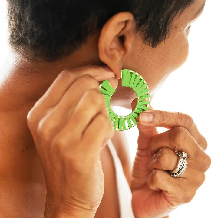 Green Raffia Georgia Earrings #VLJ504-GRN