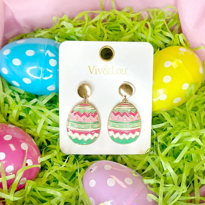 These earrings feature an enamel Easter egg design with gold accents! You will find yourself reaching for this pair to wear day after day!