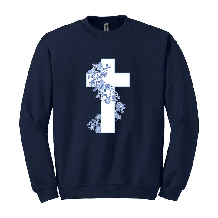 Blue Floral Cross Sweatshirt #HPSW-NAVYLG-CRS24