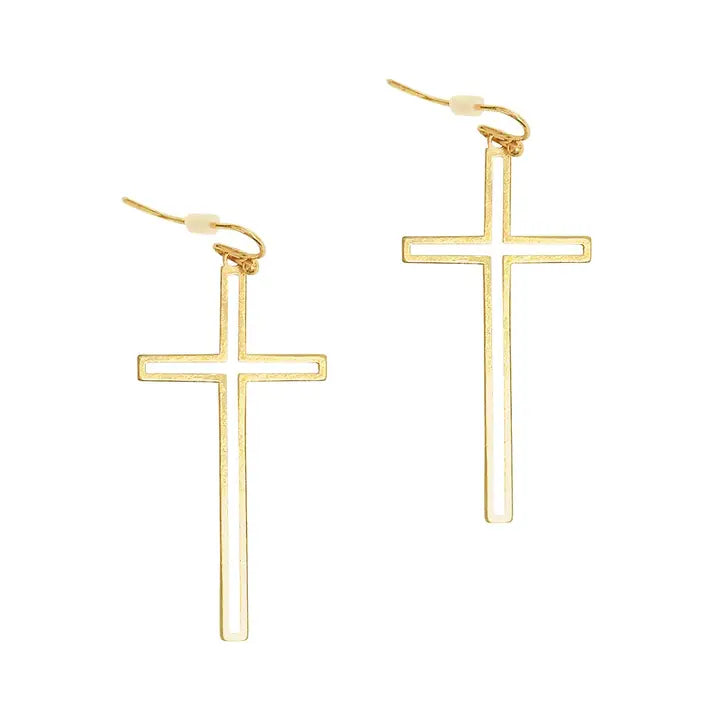 A unique take on a classic style, this pair features a timeless and dainty cross outline design that you will find yourself reaching for to wear day after day. 2" H Gold Toned Metal French Wire Earrings
