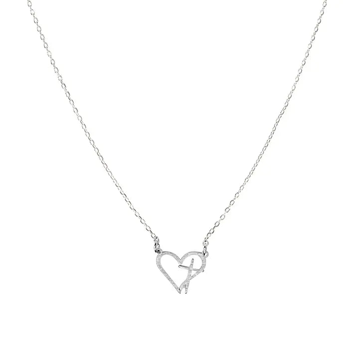 - Silver Toned Metal Cross Heart Necklace