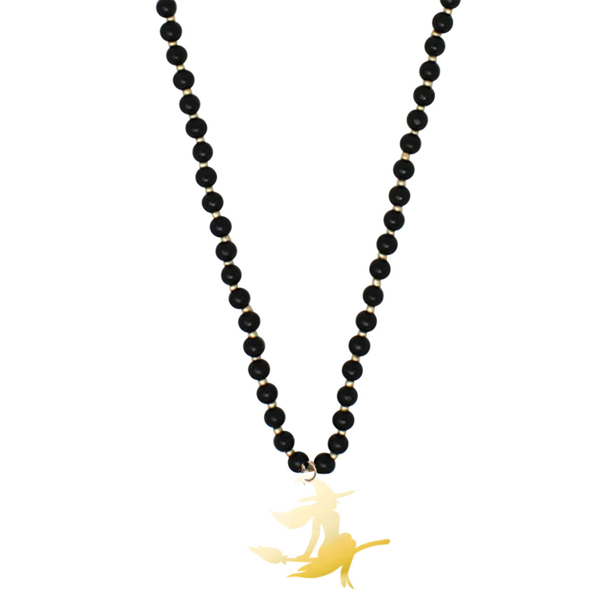 Mirrored Gold Witch Black Jennifer Necklace #ACN-BLKW-WITCH-MRGD