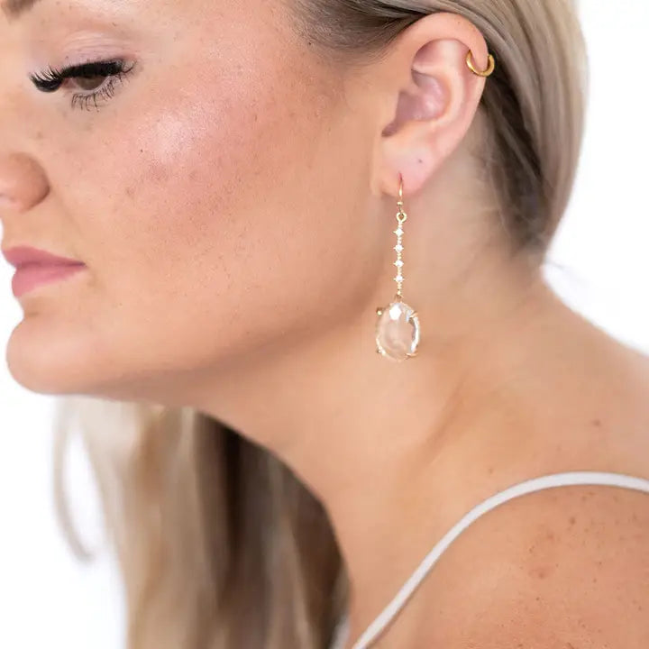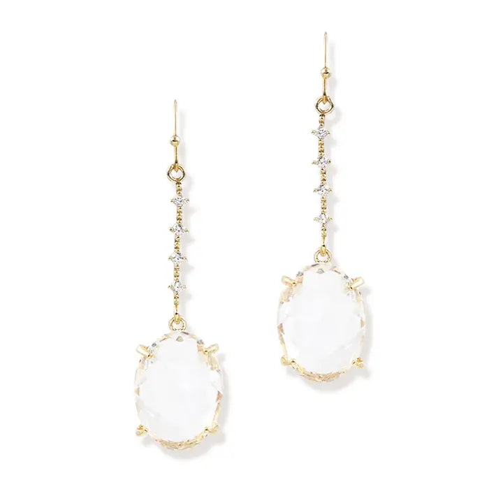 Oh so classy (& perfect for brides!), the Crystal Asher Earrings feature gorgeous gem details and stone accents that pair wonderfully with any outfit. 2" H Crystal Detail Rhinestone Accents French Wire Earrings Gold Toned Metal