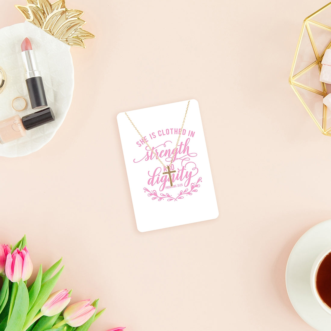 Strength & Dignity Keepsake Necklace Card #VLJC-1313GD-DIGNITY