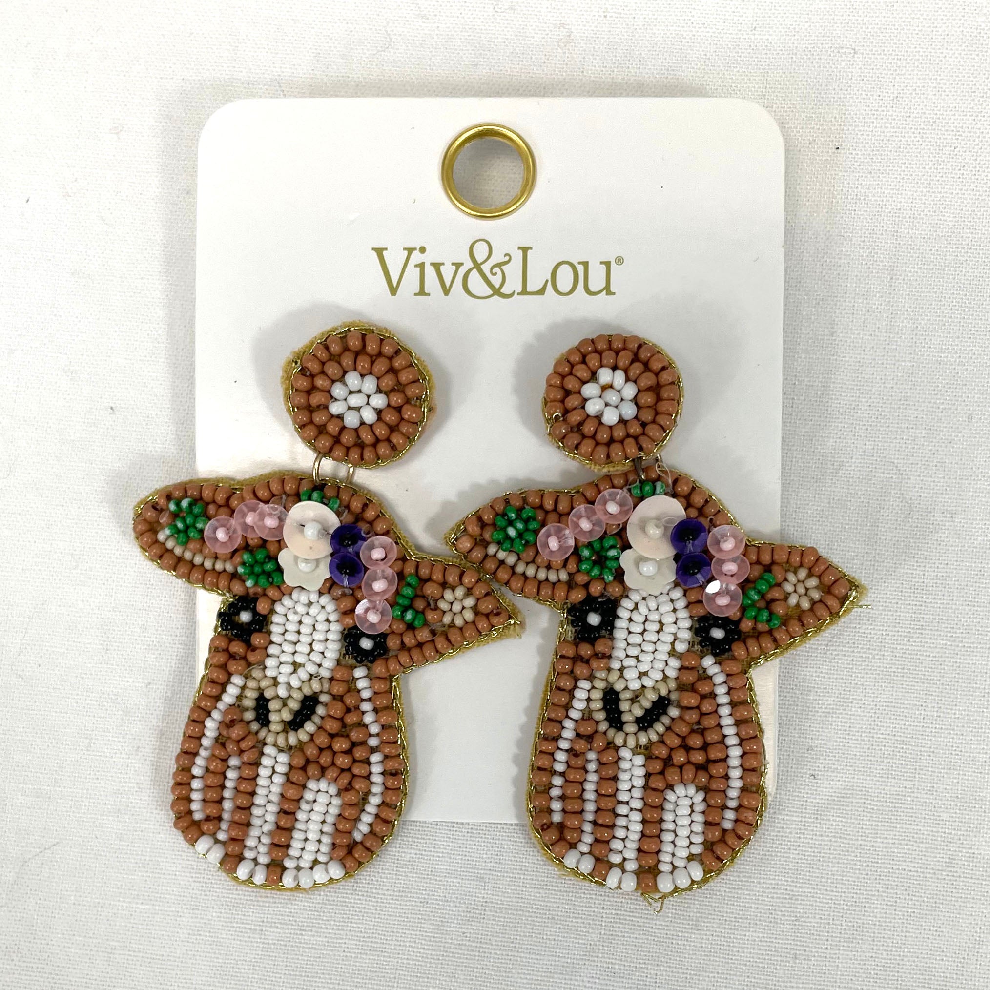 Moo, Moo, these fun statement earrings feature a beaded cow design that is sure to add an eye-catching touch to your Thanksgiving festivities! 2.5" Beaded with Felt Backing Gold Toned Metal Post Earrings