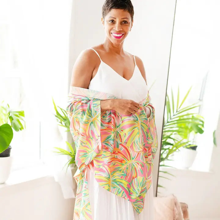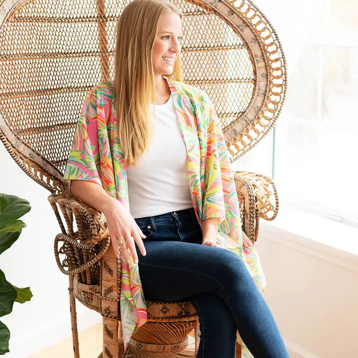 The other clothes in your closet are sure to get jealous when you keep reaching for the Emma Top! The lightweight, versatile fabric pairs well with tops & jeans, dresses, rompers, and even over swimwear. Polyester 41.5"L x 30"H 11.5" Arm Hole