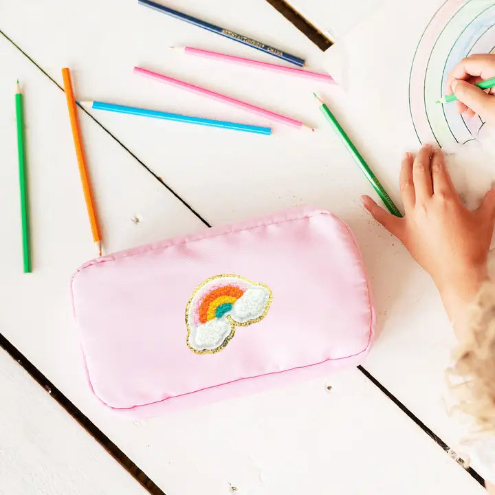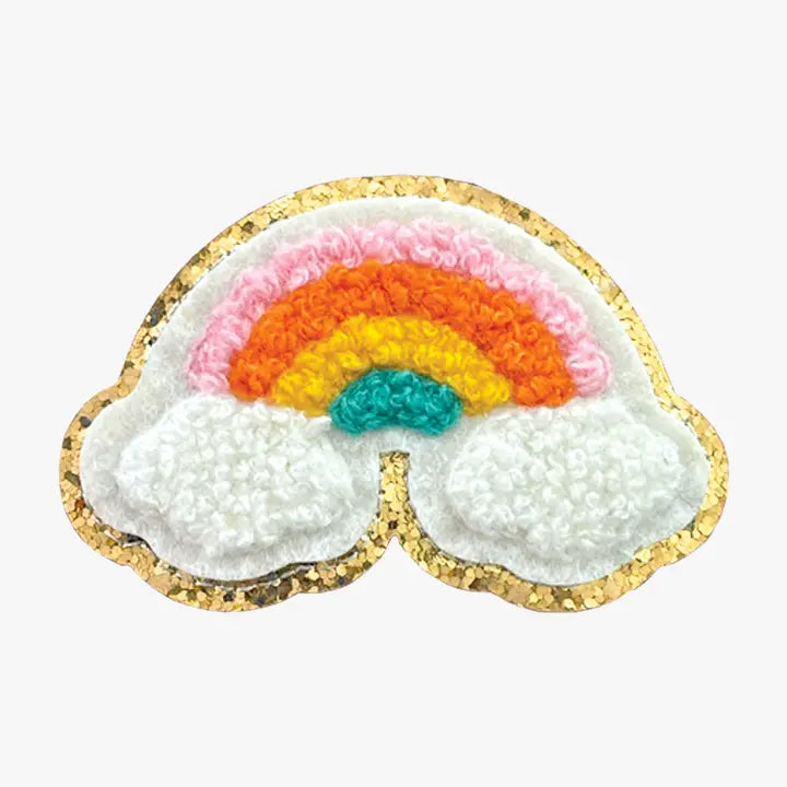 Plush Rainbow Chenille Motif & Gold Glitter Border Iron On, Sew-On or Stick-On 3M Stick-On Backing 1-10 Total Patches set