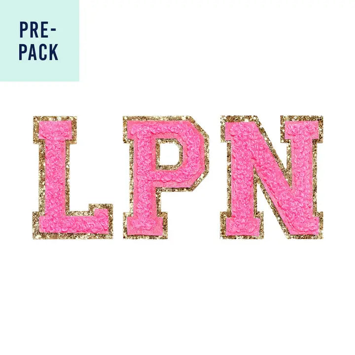 LPN Nurse Hot Pink Varsity Letter Patch 3 pc Set #PACK-LPN-HTPK