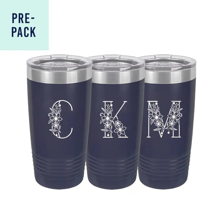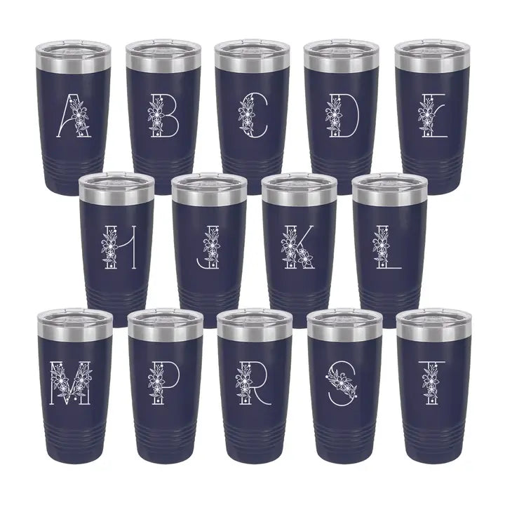 Floral Single Initial Navy 20oz Insulated Tumbler 14 pc Set #PACK-TWB20-FLNAVY
