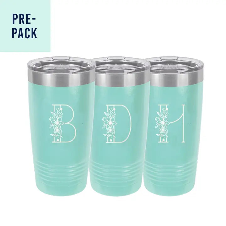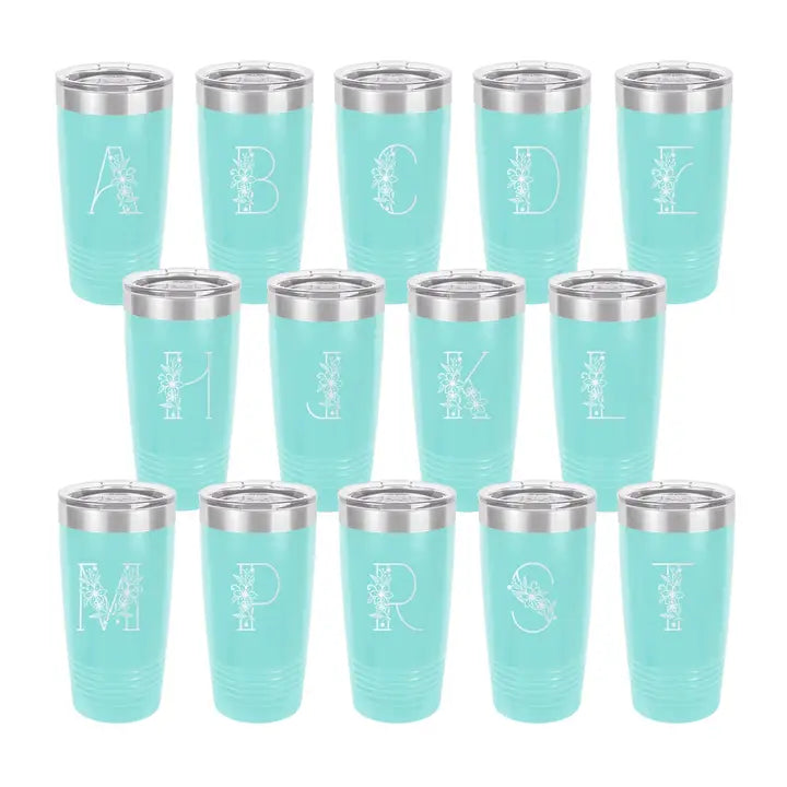 Floral Single Initial Teal 20oz Insulated Tumbler 14 pc Set #PACK-TWB20-FLTEAL