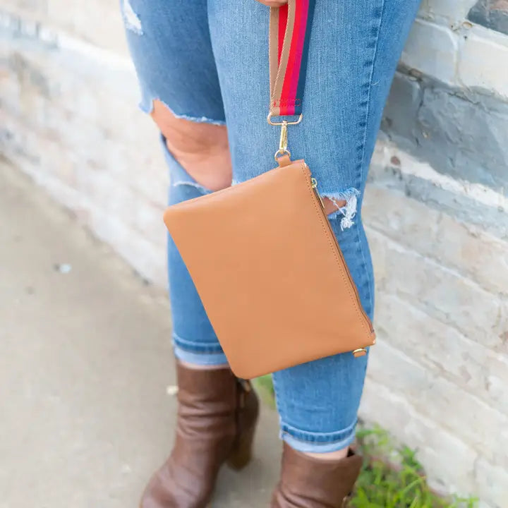 Camel Madeline Wristlet with Bright Stripe Wristlet Strap #PACK-191CAM-106STRP
