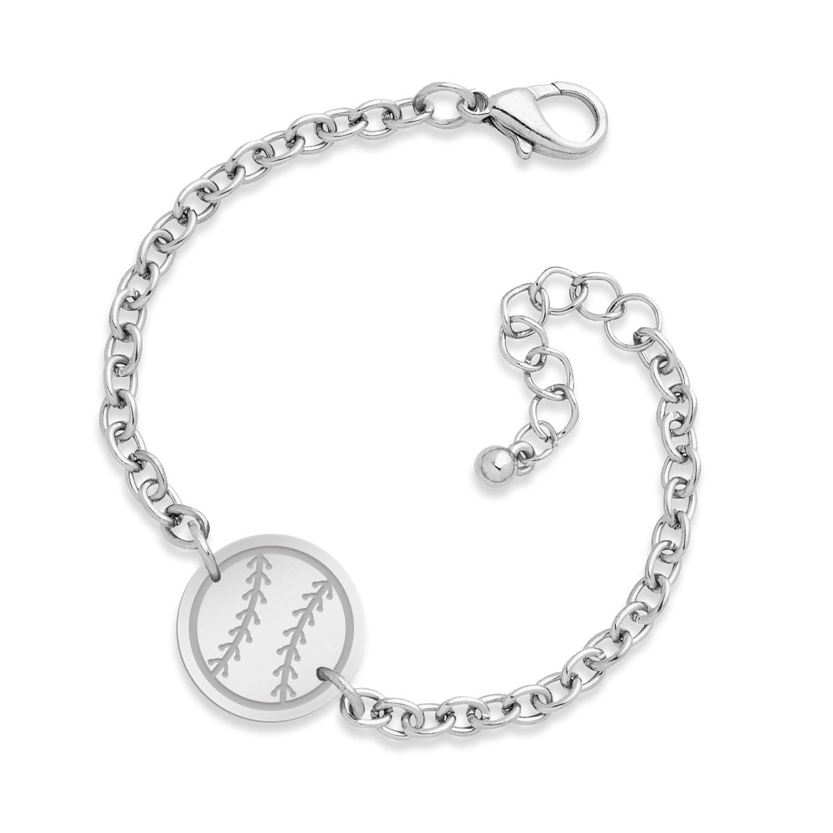 Elevate your style with our chain link bracelet adorned with a softball/baseball inspired charm, adding a touch of fun to your wrist! 8.2" Circumference Silver/Gold Plated Chain Link & Toggle Clasp 1.5" H x 1.5" W Acrylic Charm Designed and Assembled in the USA