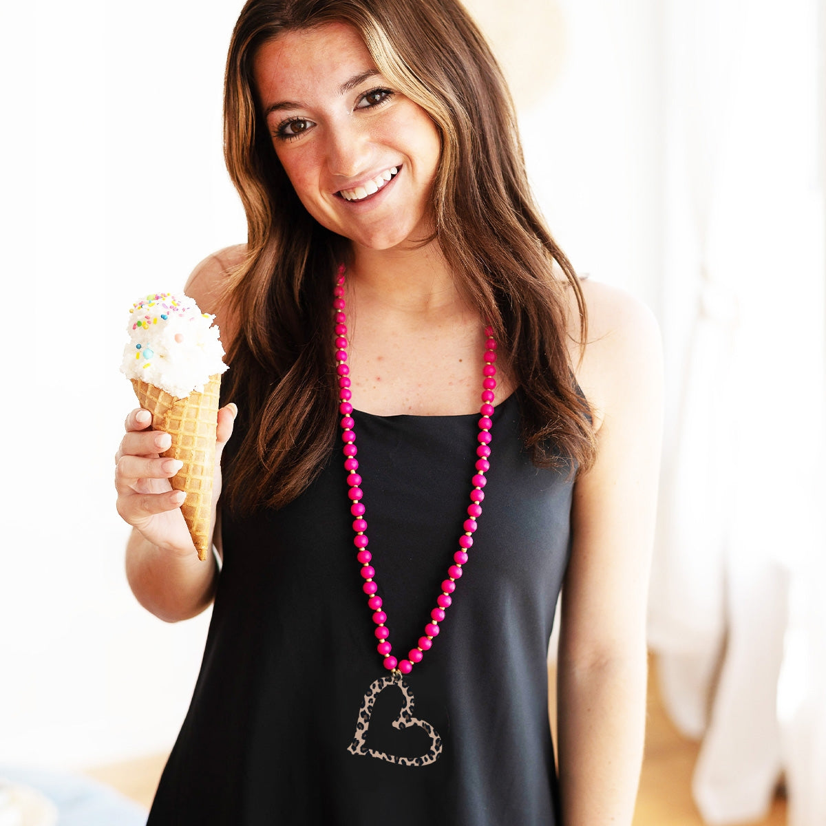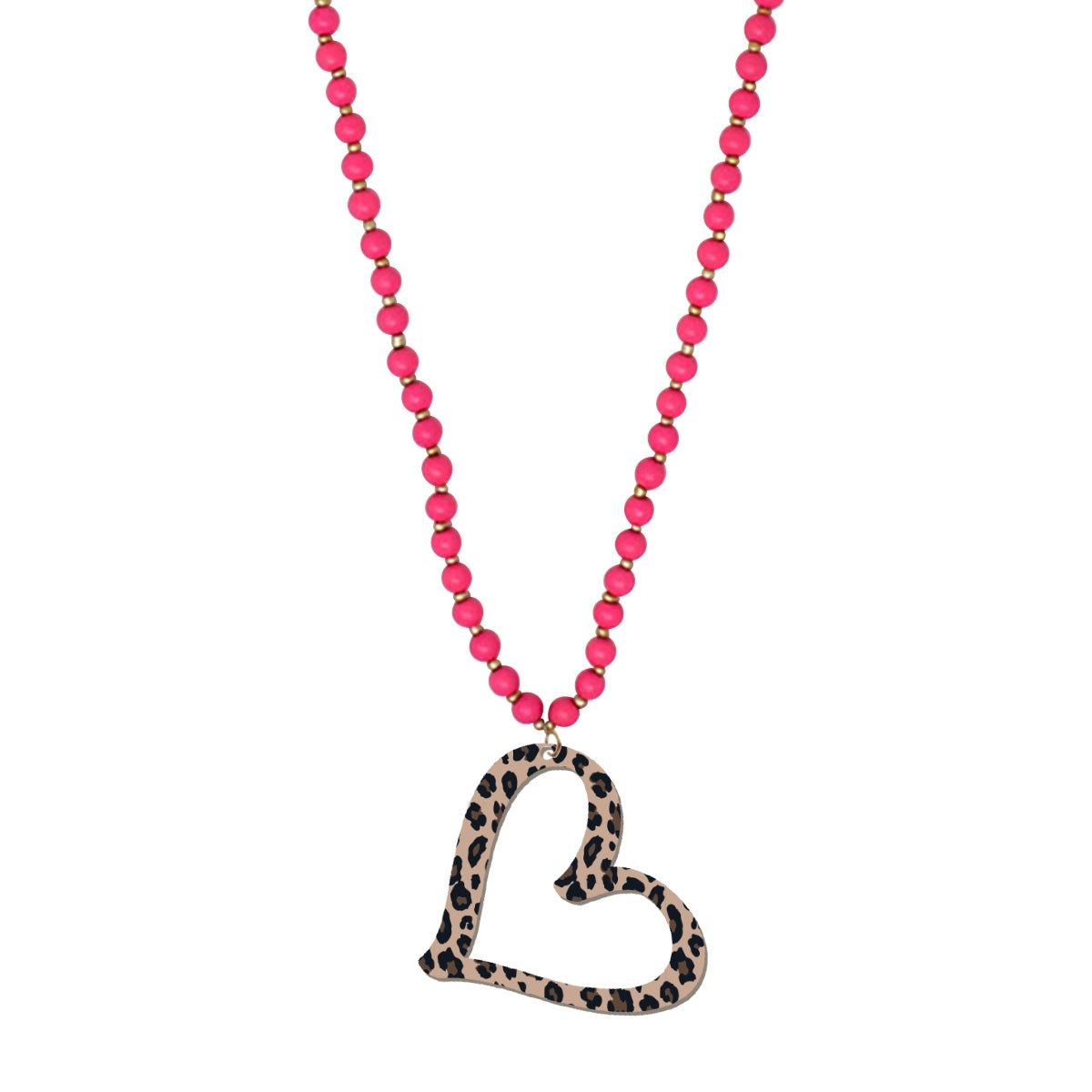 Leopard Heart Hot Pink Jennifer Necklace #ACN-HTPKW-HEART-LPRD