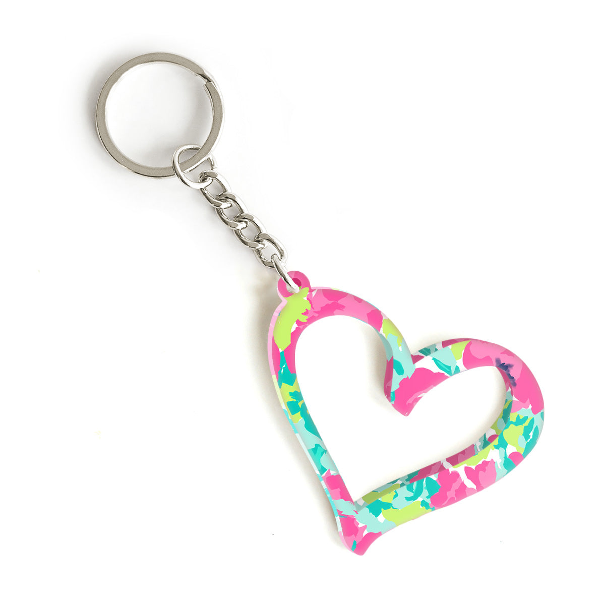 Nothing says happy heart day quite like this heart keychain! This adorable key accessory is the perfect addition to take your boring set of keys to fabulous! 2.5” Printed Acrylic Design Silver Plated Clip Designed and Assembled in the USA