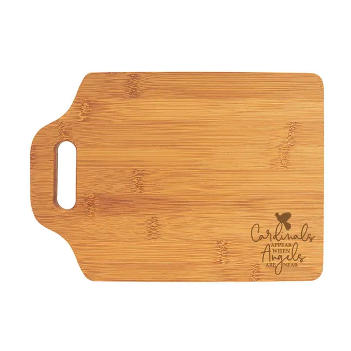 From home décor to charcuterie boards, this gorgeous cutting board is the perfect addition to any home! 8"L x .5"W x 11"H Bamboo (Natural Wood Colors May Vary) Handle Detail Handwash Only
