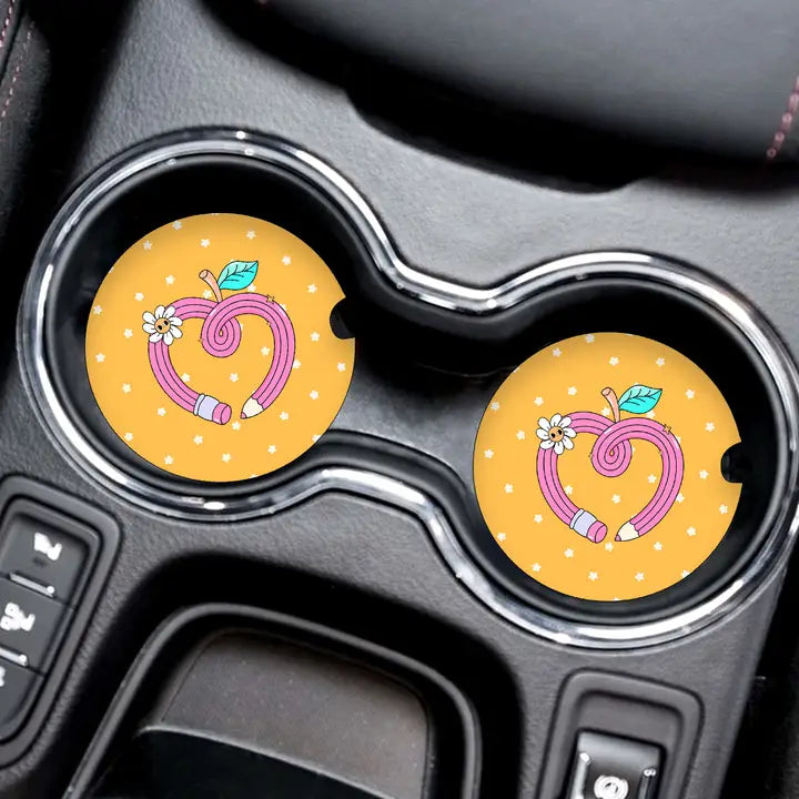 Apple Pencil Heart Car Coaster Set #SPACK-CC132-APHRT