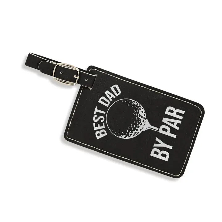The perfect accessory for any set of luggage, this tag features a sturdy buckle style closure and a clear window card slot on one side to hold information. Silver Lasered Design 4.25" L x 2.75" H Vegan Leather Front Clear Plastic Window Adjustable Strap with Silver Buckle Closure