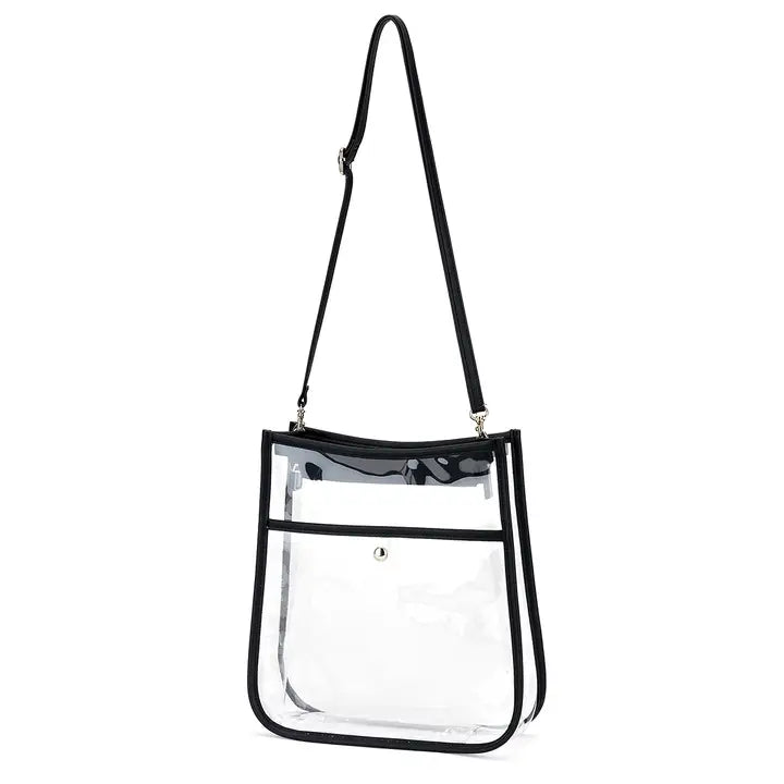 Clearly the best, this Clear Heather Purse is perfect for the big game or that upcoming concert! You won’t know how you ever lived without it. 11" L x 3.5" W x 12" H Clear Plastic Body with Vegan Leather Trim Exterior Snap Pocket Adjustable/Detachable Crossbody Strap Gold Toned Metal Hardware Zipper Closure Stadium Approved