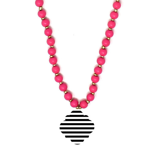 Black Stripe Clover Hot Pink Jennifer Necklace #ACN-HTPKW-CLV-STBLK