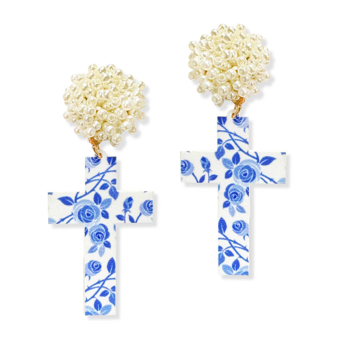 These adorable earrings feature a statement stud at the top and a fun design that is guaranteed compliments! 2.5" H Pearl Post Earrings 2.0" H x 2.6" W Blue Floral Acrylic Design Designed and Assembled in the USA