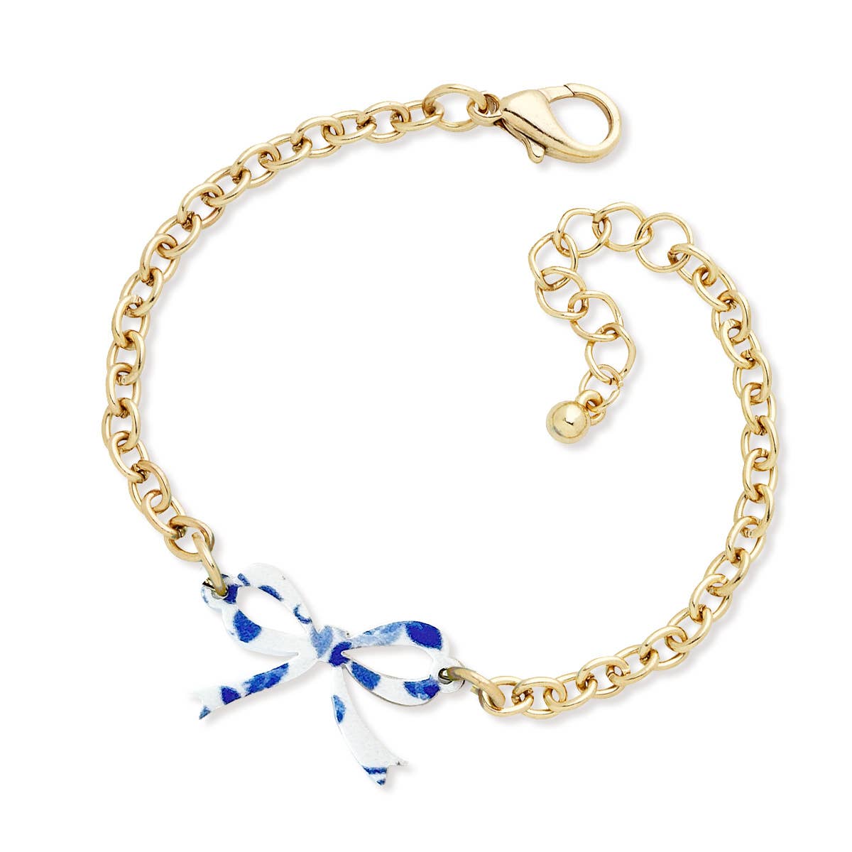 Elevate your style with our link style bracelet adorned with a trendy bow charm, adding a touch of fun to your ensemble! 7-9" Adjustable 1" Acrylic Bow Design Gold Toned Metal Coordinating Earrings & Necklace Available