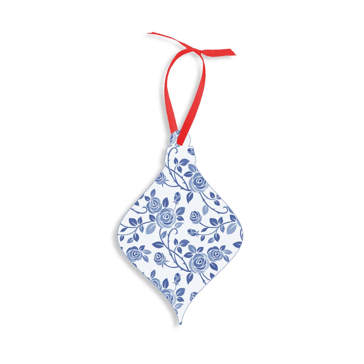 This ornament is the perfect addition to any holiday decor! 4.5" H Blue Floral Acrylic Includes Red Satin Ribbon for Hanging