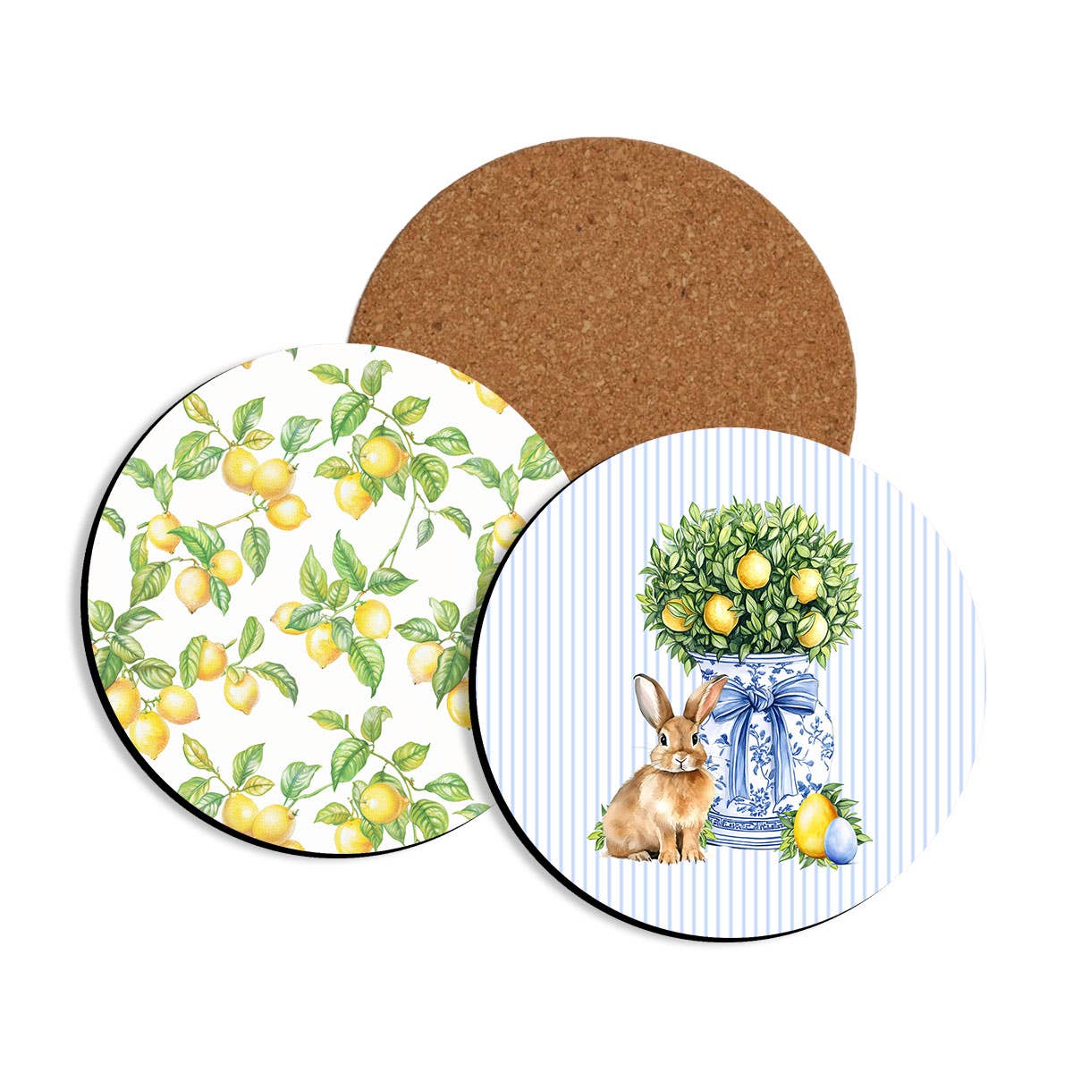 Hop into Easter with style, the Chinoiserie Bunny Coaster Set is the perfect way to add some fun to your holiday festivities. Whether in your living room, dorm, office, patio space, or bedroom- these fun coasters add a pop of personality to your space while helping to protect the surface of your furniture from dreaded water rings! Made from durable cork, these coasters are sure to last. 3.75" Diameter Glossy Printed Design Includes 4 Coasters Cork Backing Designed and Printed in the USA Coordinating Cutting Board Available