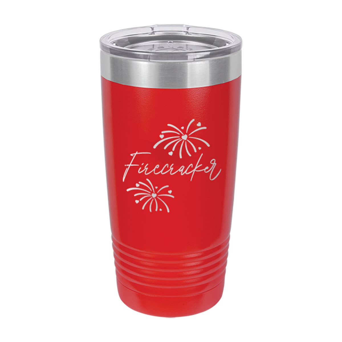 Celebrate the Fourth of July with this fun patriotic tumbler that is sure to keep your drinks cold or hot! Laser Engraved Design 20 oz. Powder Coated Insulated Stainless Steel Includes Clear Lid