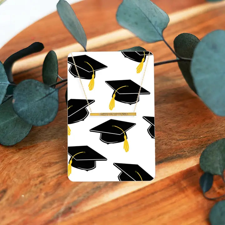A graduation keepsake card paired with a dainty necklace makes the perfect gift to celebrate academic success. The card can be used as a bookmark, offering a lasting memento to hold onto for years to come. 16-18" Adjustable Chain Be True Be You Bar Pendant Gold Plated Brass Lead and Nickel Free Card Measurement: 2.5” x 3.75” H