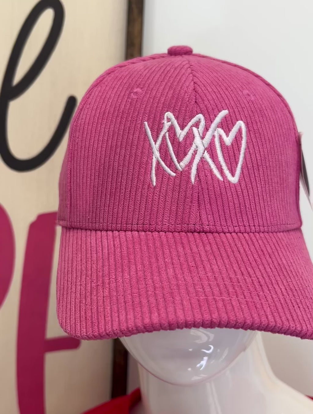 Heart XOXO Hot Pink Corduroy Cap #M193VL-HTPKCORD-HRTXO