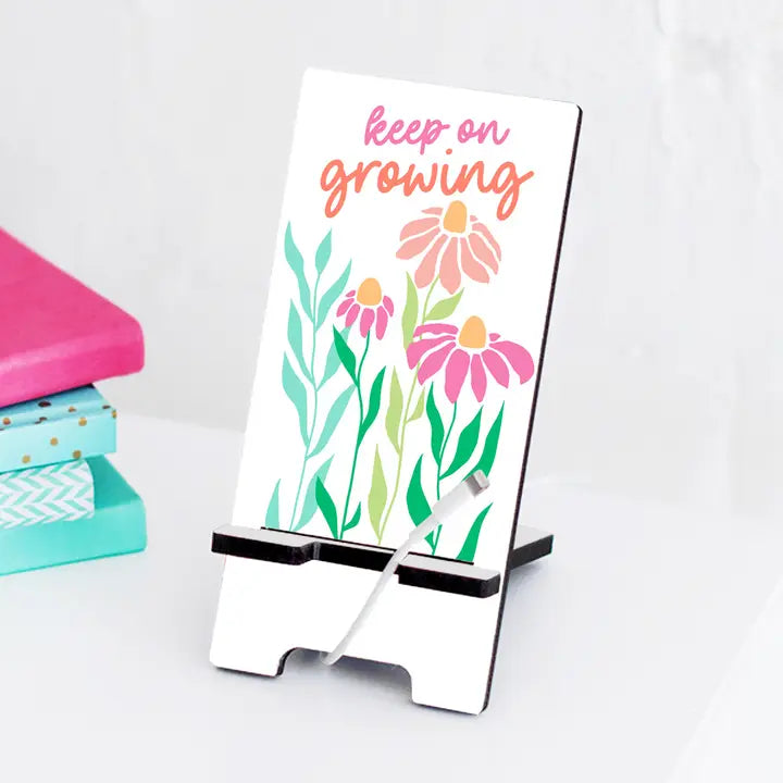 Whether on a desk, kitchen counter, or a nightstand, one thing is for sure- this phone stand is a fun and functional way to brighten up any space and stay organized. Use this Phone Stand as a charging dock with your charging cable/convenient cord cutout or as a phone holder while watching a video or reading a recipe!