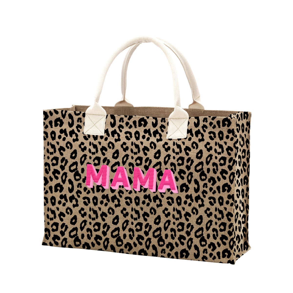 Hey Mama! Has anyone told you that you are doing a great job lately? Show everyone how proud you are of your job as a Mama with this trendy tote! Everyone's favorite tote is back in a wild new print! This tote is roomy and perfectly holds all your necessities. 15.75" L x 6.25" W x 13.5" H Burlap Embroidered Design Interior Lining Interior Zipper Pocket Reinforced Bottom Easy-to-Carry Handles Designed and Embroidered in the USA