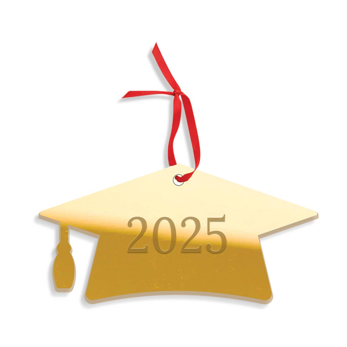 Mirrored Gold 2025 Grad Cap Graduate Ornament