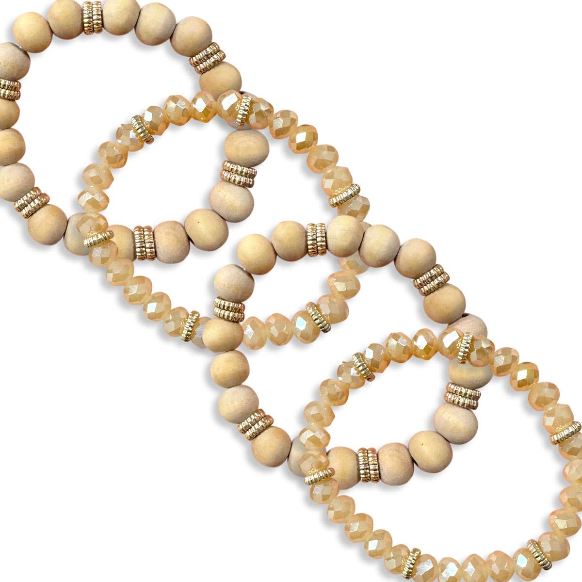 4 Bracelets Total - 2 of Each $4.00 Each $40 Value Natural Wooden Beads with Gold Toned Metal Accents Iridescent Tan Beads with Gold Toned Metal Accents