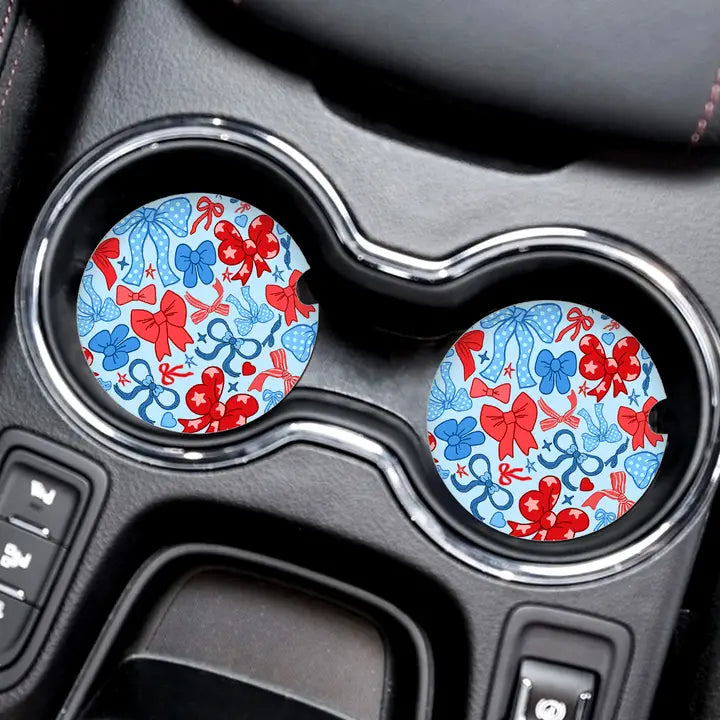 Patriotic Bow Car Coaster Set #SPACK-CC132-RWBBOW-2