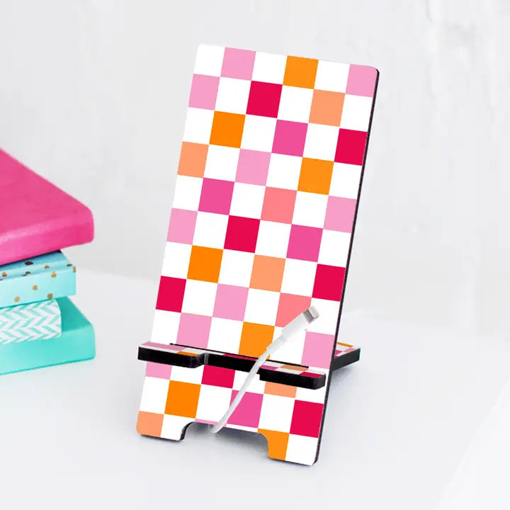 Whether on a desk, kitchen counter, or a nightstand, one thing is for sure- this phone stand is a fun and functional way to brighten up any space and stay organized. Use this Phone Stand as a charging dock with your charging cable/convenient cord cutout or as a phone holder while watching a video or reading a recipe!