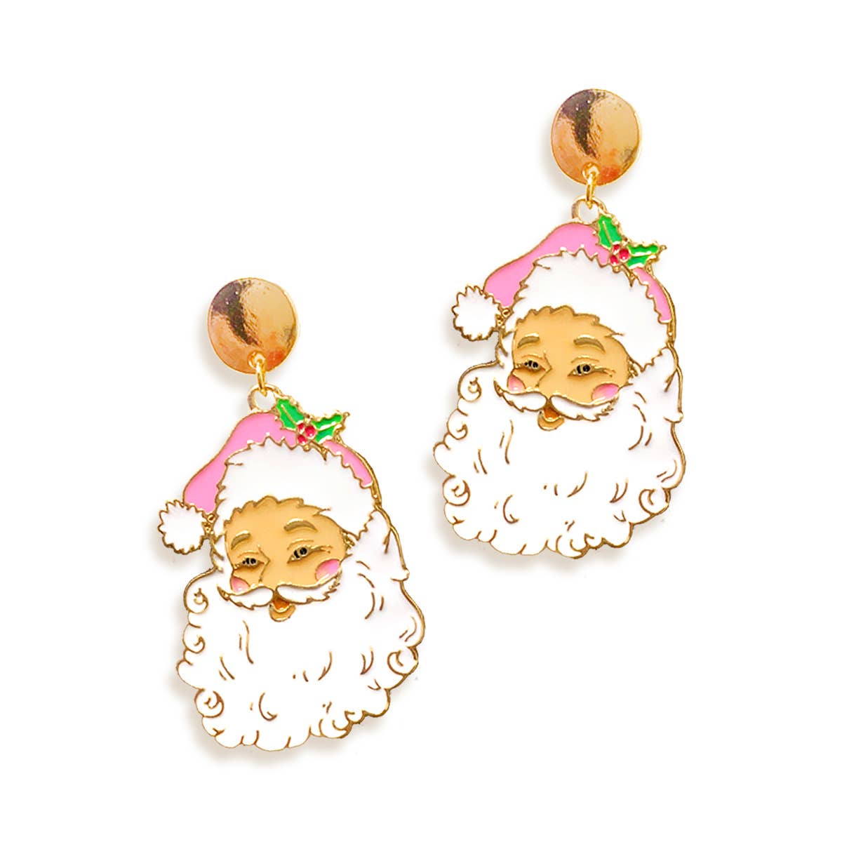 Fun and festive, these Vintage Santa inspired earrings are a cute addition to any holiday look! 2" H Enamel Gold Toned Metal Post Earrings