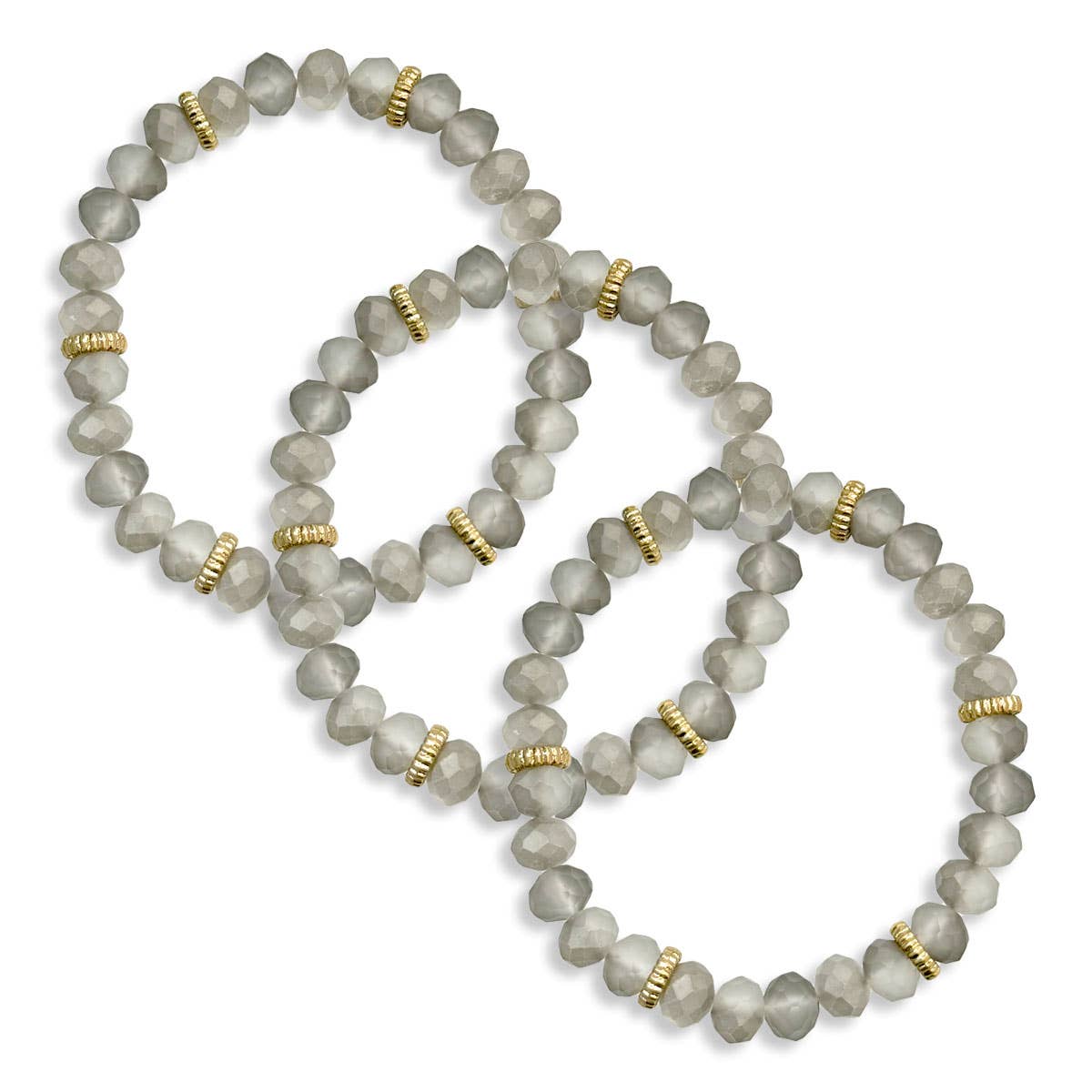 3 Bracelets Total $4.00 Each $20 Value Translucent Slate Stone Beads with Gold Toned Metal Accents
