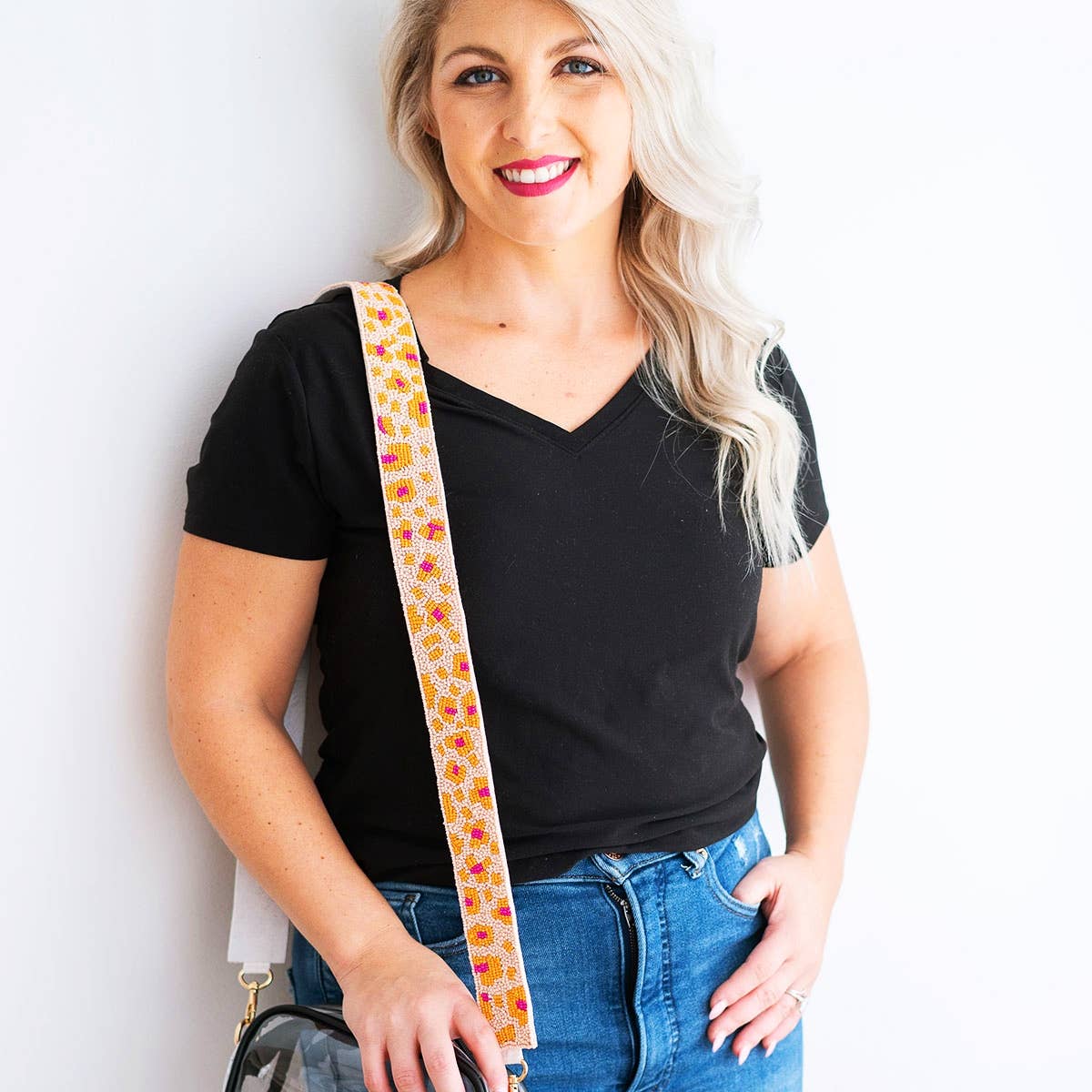 Change up the look of your favorite crossbody style bag by attaching a fun Beaded Crossbody Strap to match your outfit! 43.5” L x 1.5” W Shoulder Strap Beaded with Felt Backing Gold Toned Metal Hardware