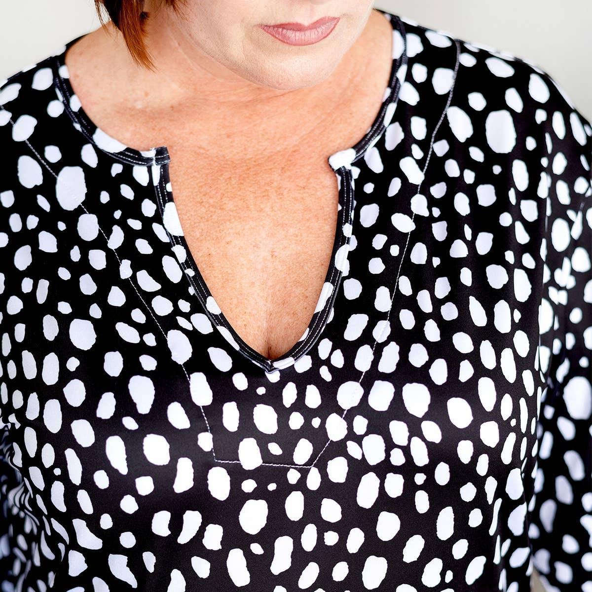 Say hello to your new favorite dress, the super flattering silhouette paired with its fun pattern guarantees you will be reaching for this outfit time and time again! Polyester/Spandex Blend 3/4 Sleeve Coordinating Travel Bag & Backpack Available