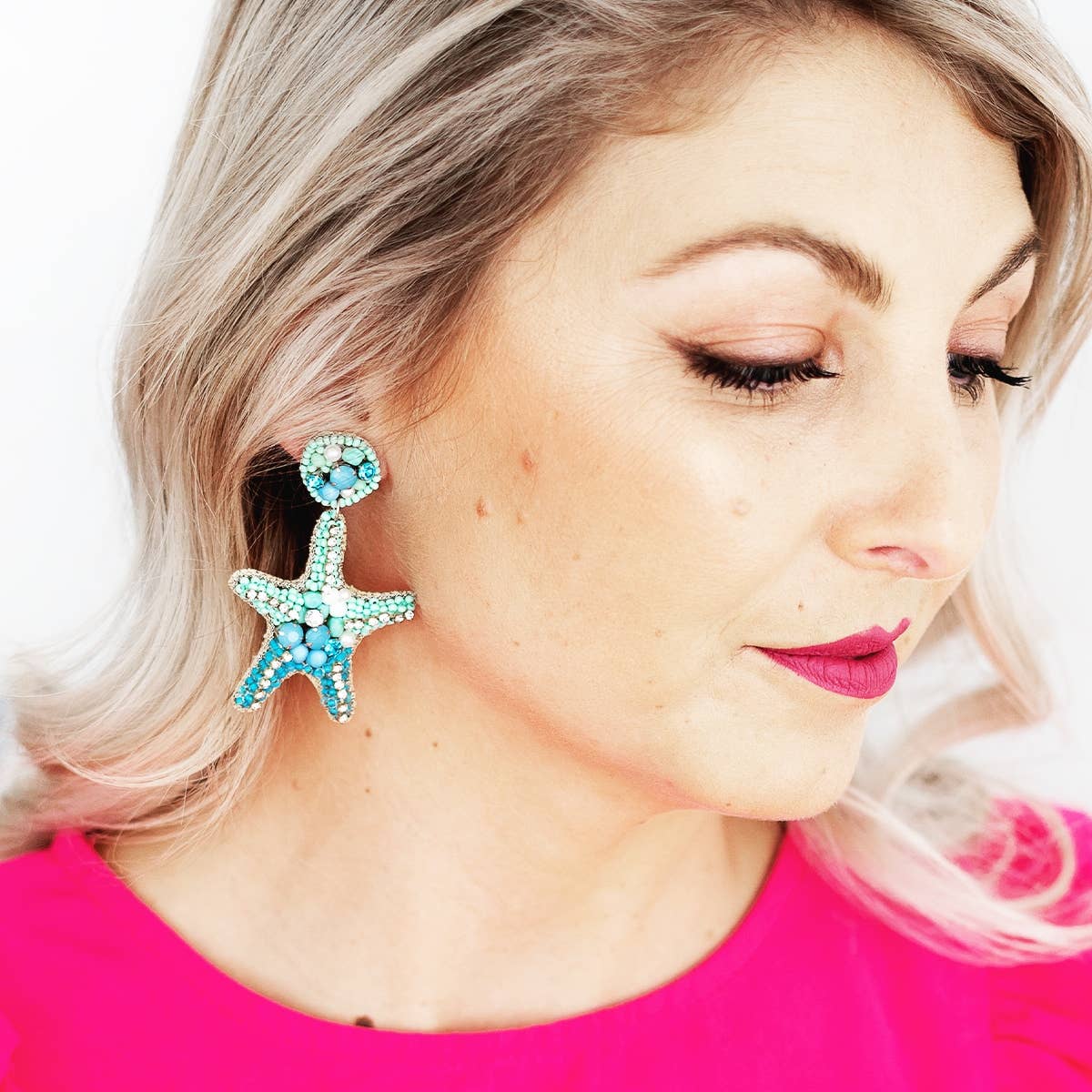 These statement earrings feature a beaded starfish inspired design that is sure to add an eye-catching touch to any outfit! 2.5" Beaded Felt Backing