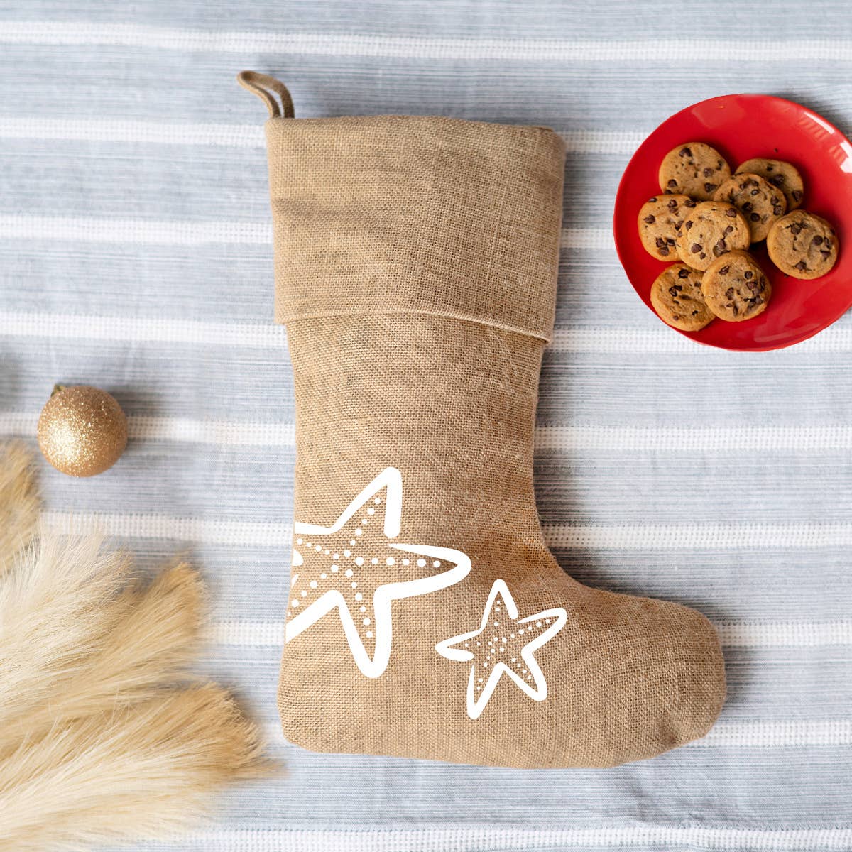Starfish Burlap Stocking