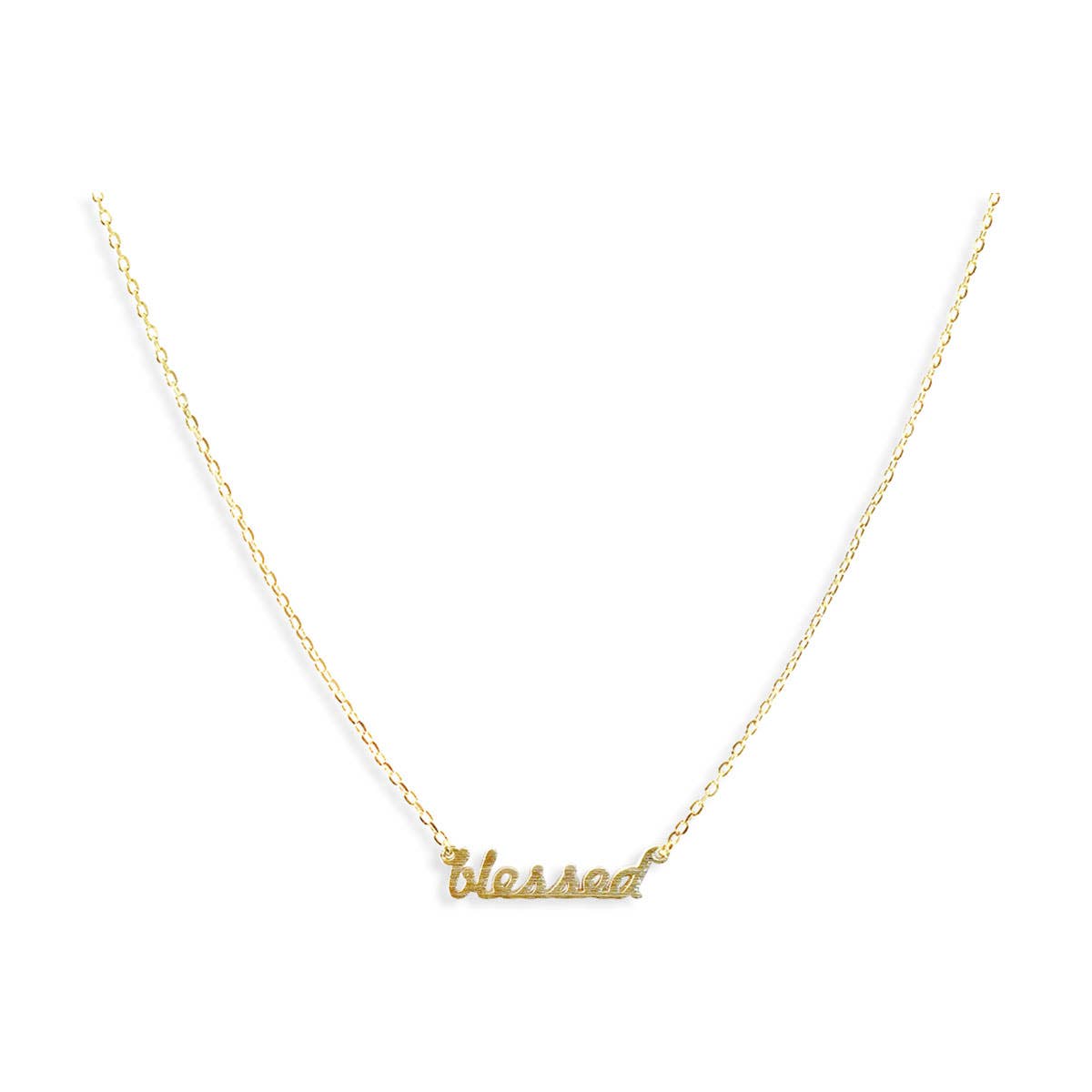 This keepsake card features a fun design, a positive message, and an adorable simple necklace. The keepsake card can be used as a bookmark, a fun piece of décor to add to your bulletin board or refrigerator, and as a daily reminder to make you smile. 16-18" Adjustable Chain Blessed Script Pendant Gold Plated Brass Lead and Nickel Free Card Measurement: 2.5” x 3.75” H