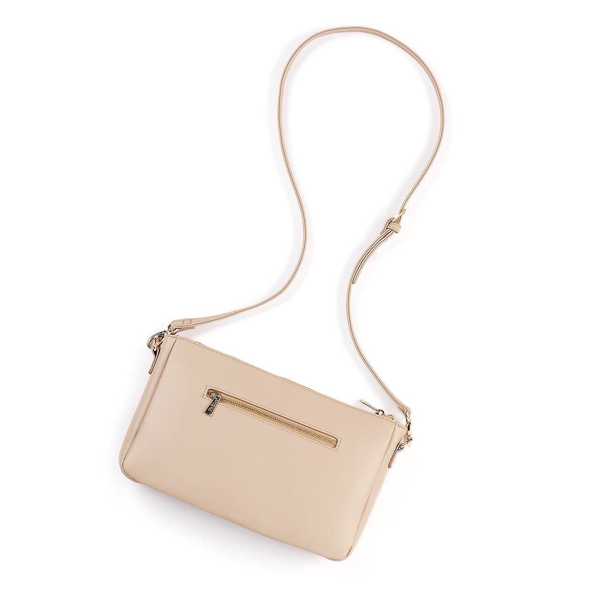 Tan Hadley Purse with Hot Pink Stripe Crossbody Strap