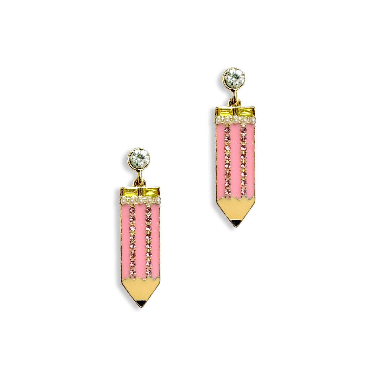 School's in and these earrings are a fun touch to any outfit and will guarantee compliments! 1.75" H Enamel Rhinestone Detail Gold Toned Metal Post Earrings
