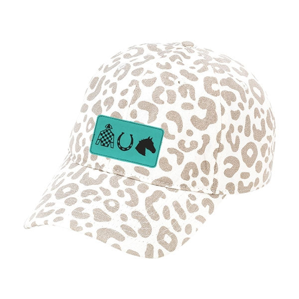 Teal Derby Patch Natural Leopard Cap #L190-NATLPRD-P108-DERBY