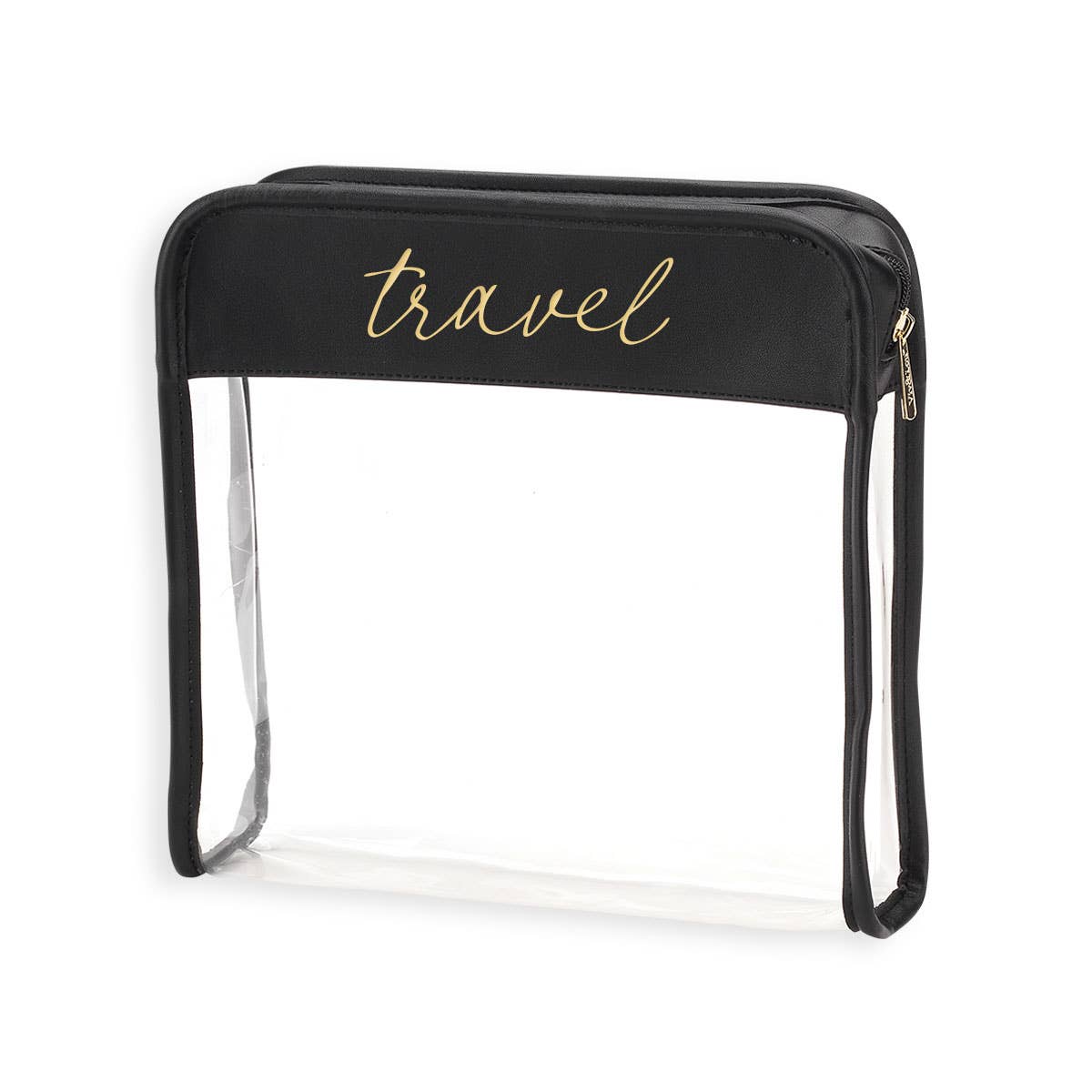 Ready, set, let’s go- the Jet Setter Toiletry features an easily wipeable material and is perfect for travel and holding all your toiletries and more! 10.5" L x 3" W x 10" H Clear Plastic Body with Vegan Leather Trim Embroidered Design Gold Toned Metal Hardware Zipper Closure Fits Full Size Beauty Products
